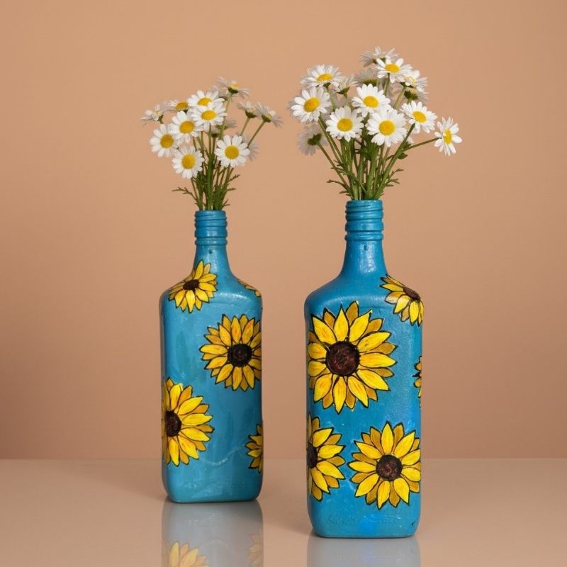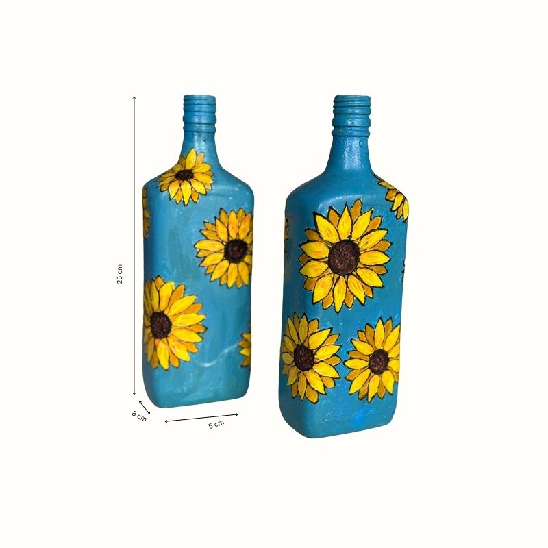 Sunflowers bring happiness, warmth, and hope! Add these hand-painted upcycled bottles to your home. Each brushstroke is hand-painted, making every bottle a unique collectible.