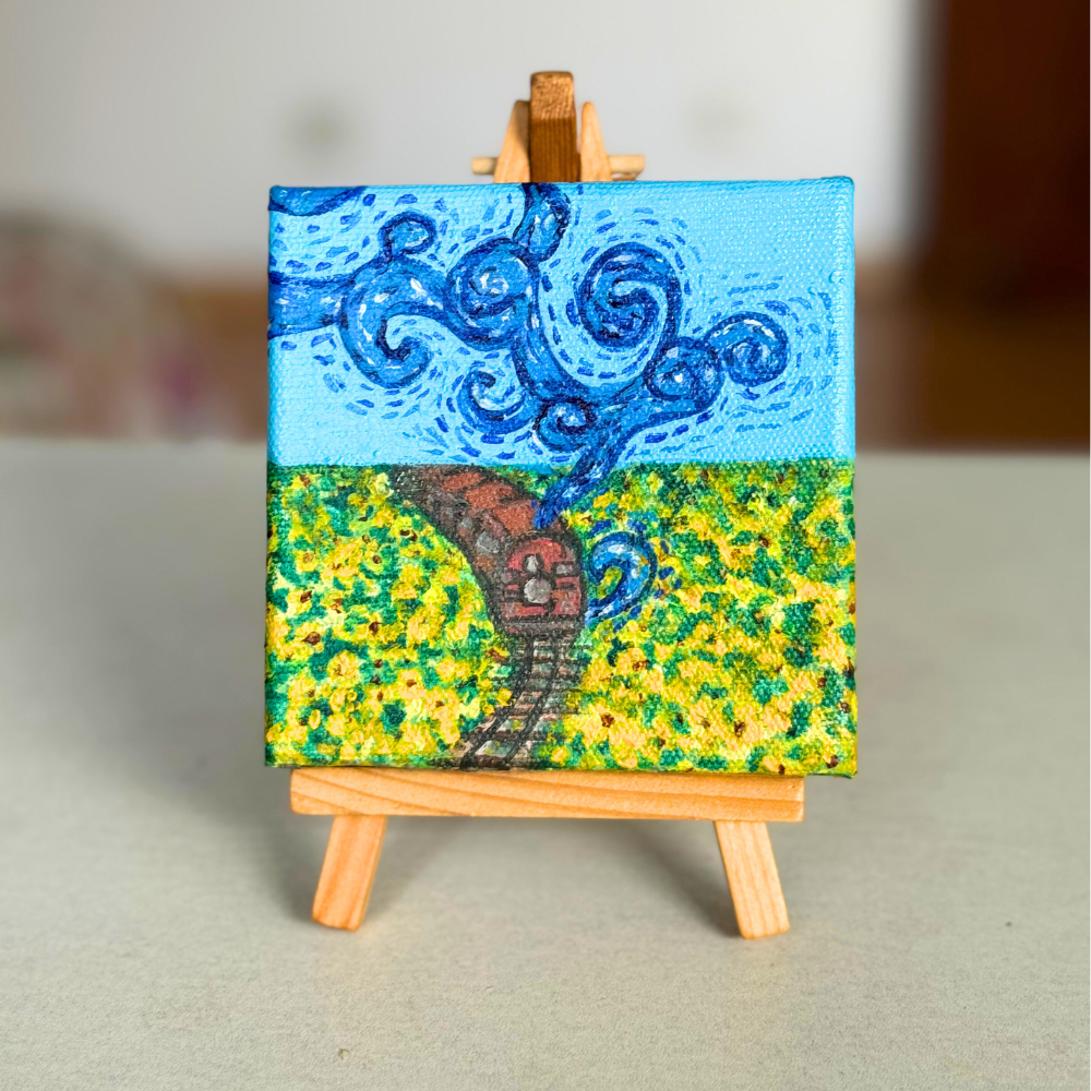 At just 5 x 5 inches, this hand-painted mini canvas is perfect for adding a touch of art to your desk, bookshelf, or cozy corner. The painting comes with a mini easel, making it ready to display right away—no framing required.
